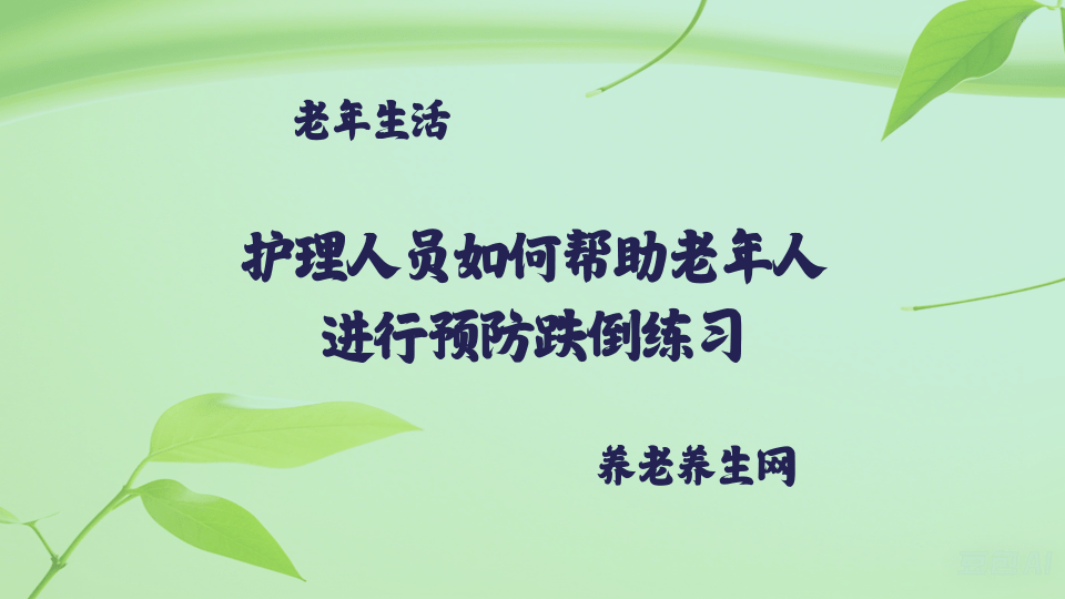 当护理人员与老年人一起进行预防跌倒练习时,他们可以加强与老年人的关系,同时也帮助他们对自己的能力更有信心。这种伙伴关系可以帮助老年人在人生的困难时期保持乐观和积极性。护理人员可以在预防跌倒方面发挥巨大作用,可以识别跌倒风险因素、解决家庭危险并协助老年人进行跌倒预防活动!